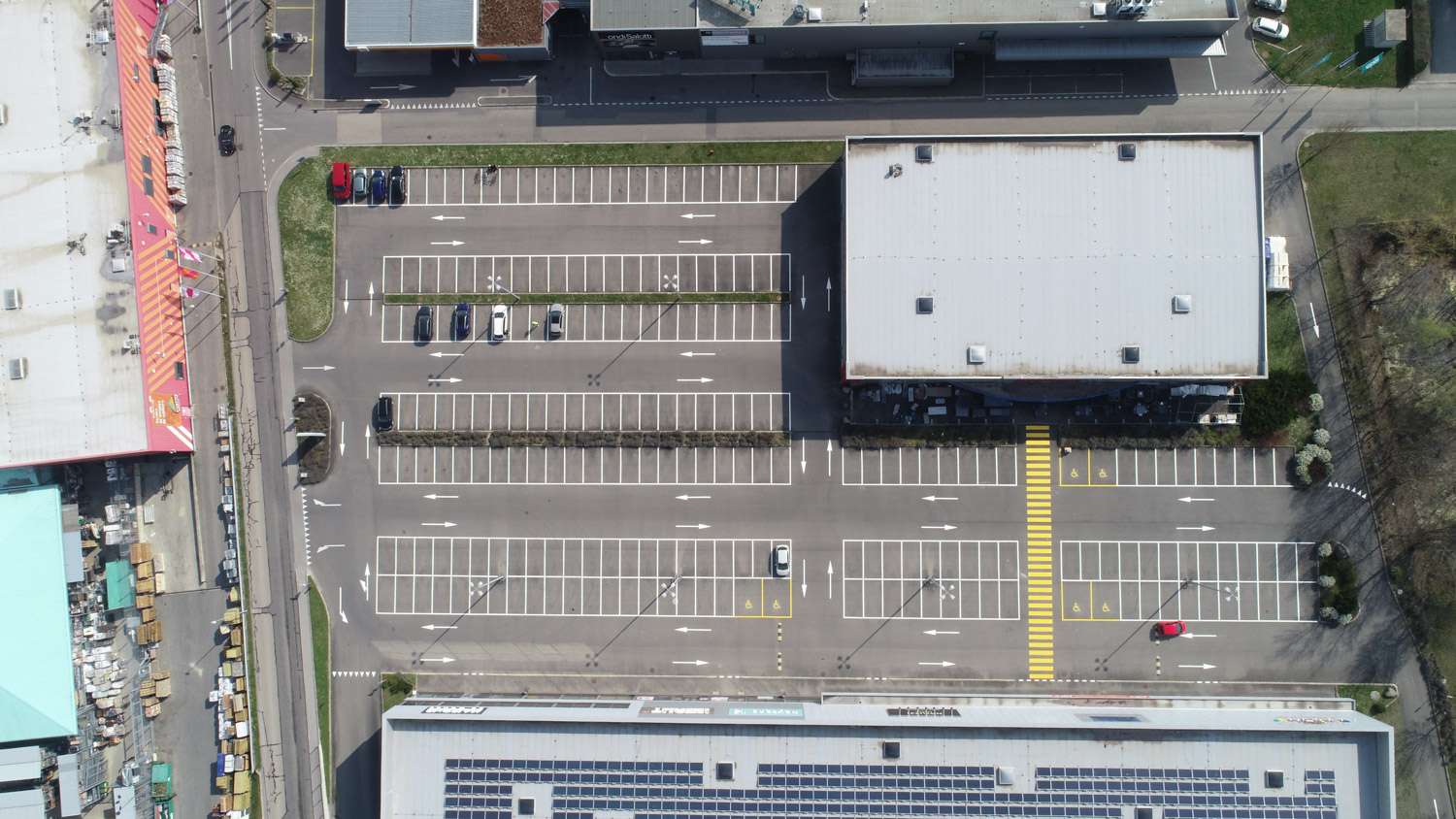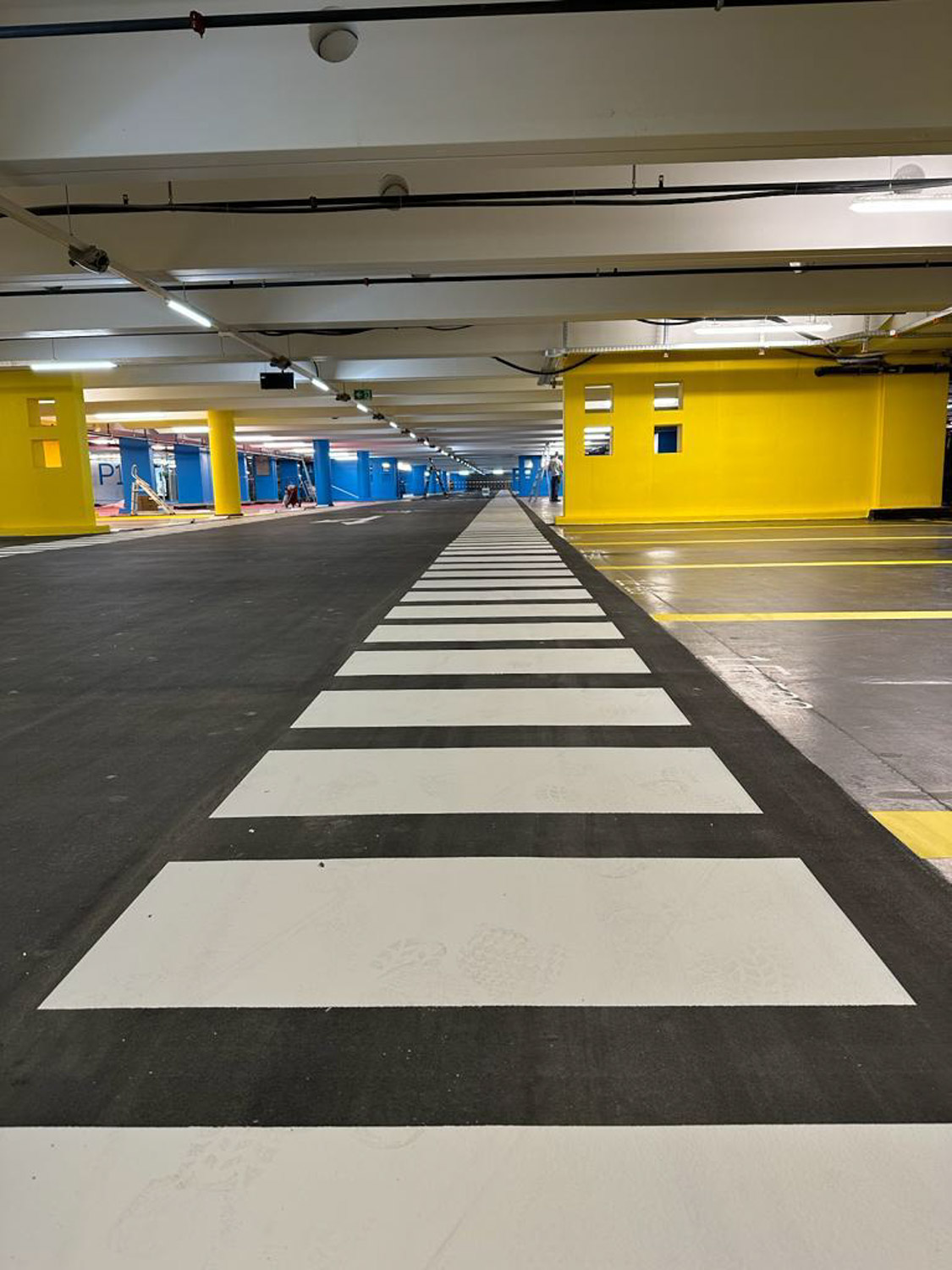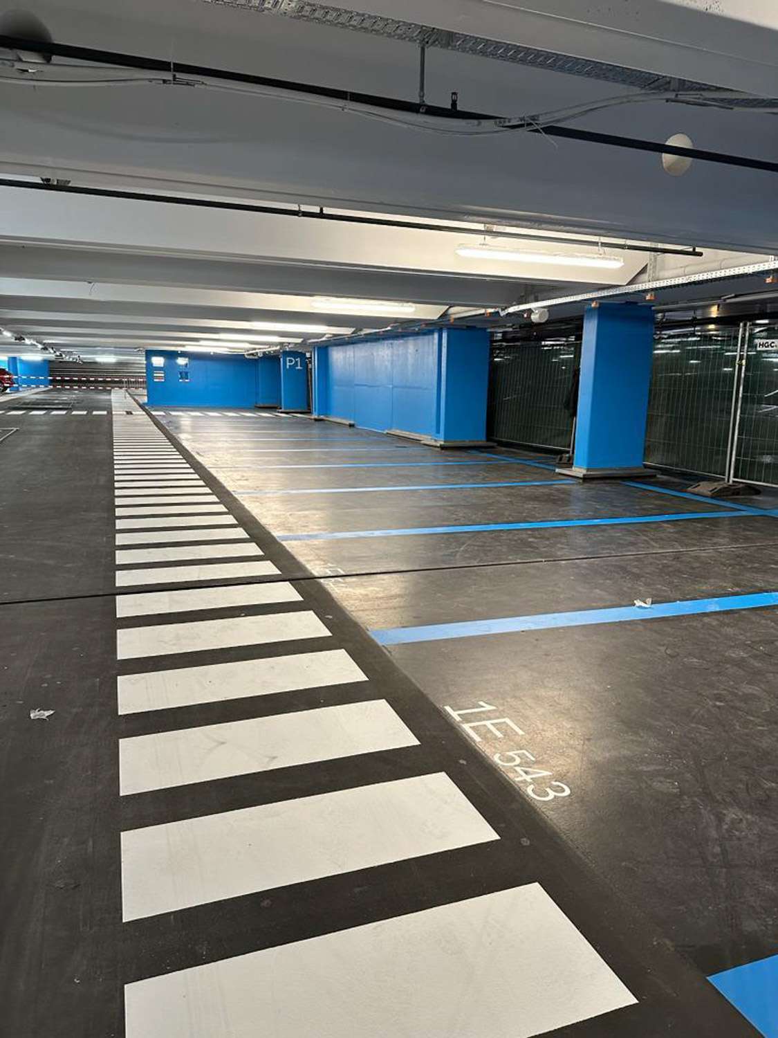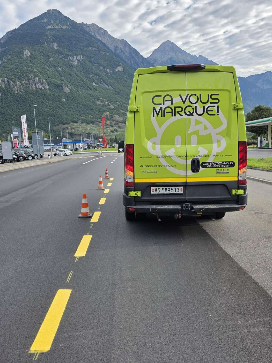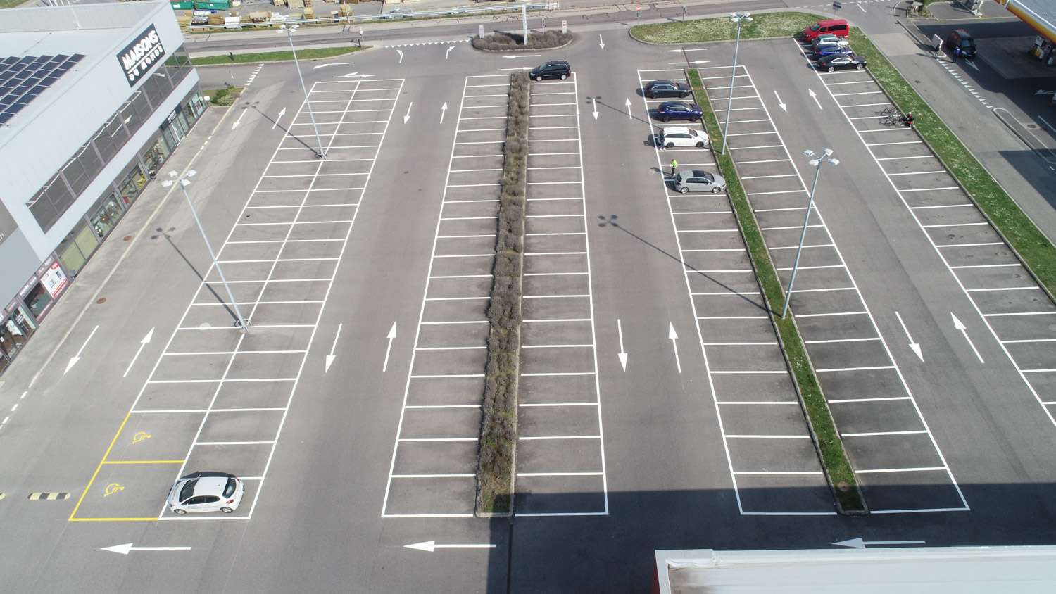 Le marquage en peinture monocomposante est le plus courant dans le secteur. Il est principalement utilisé dans le marquage définitif de parking extérieur ou intérieur, mais aussi pour des phases provisoires dans la construction de route.