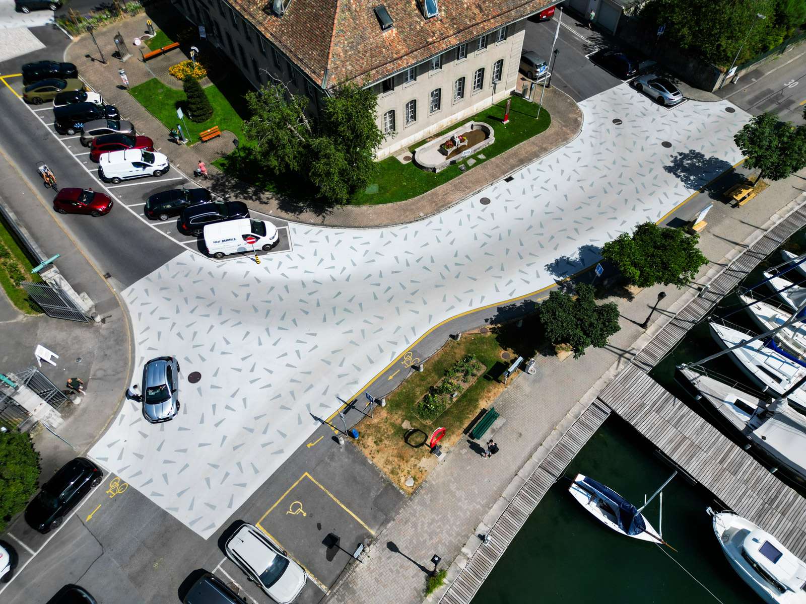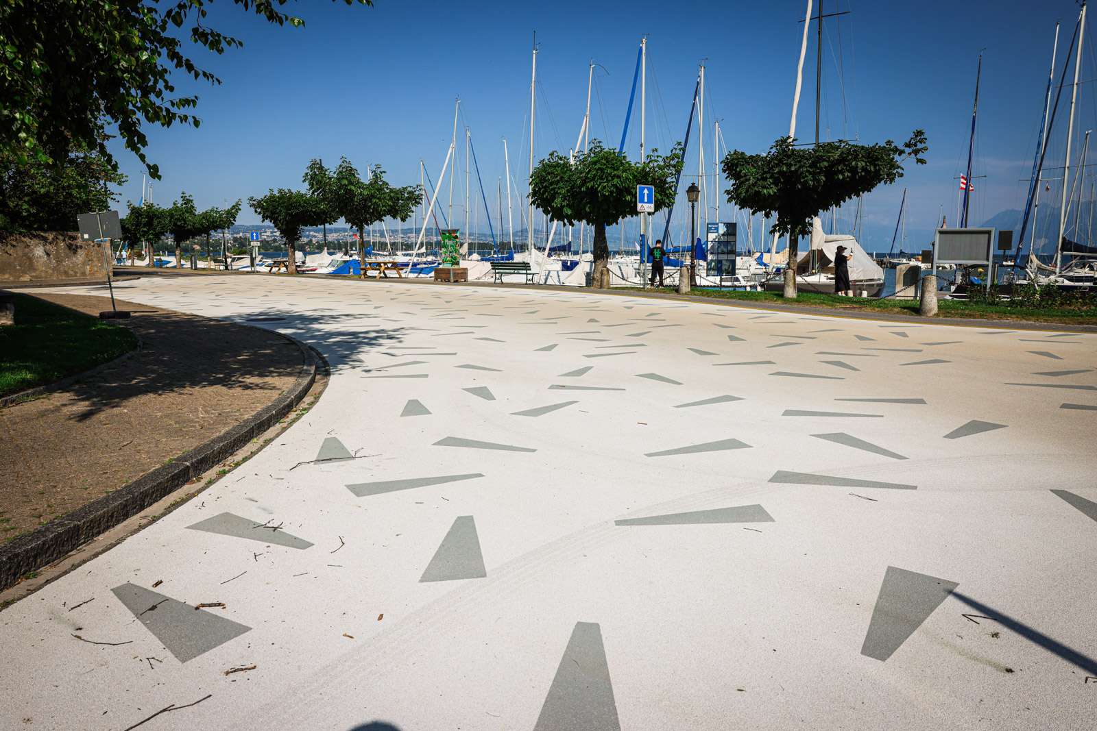 Aménagement de près de 4’000 m² de surfaces colorées aux propriétés antidérapantes.