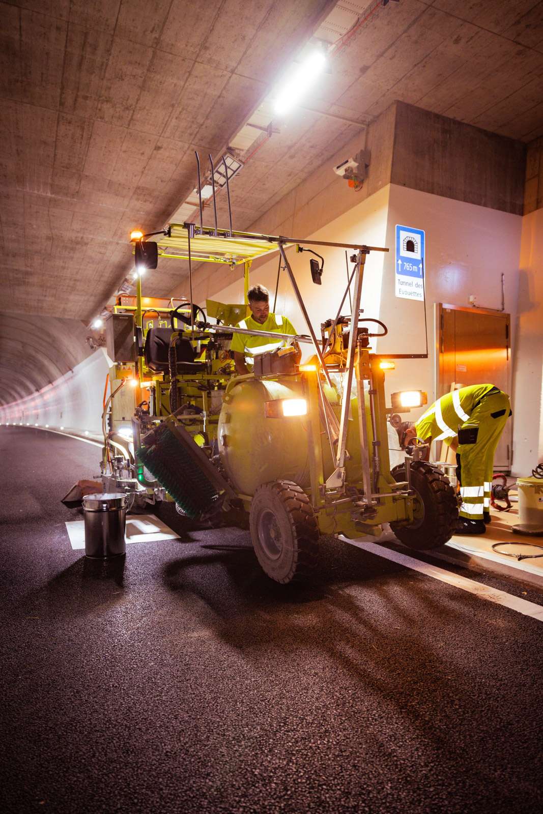 Réalisation de l’ensemble des marquages nécessaires à la circulation dans le tunnel.