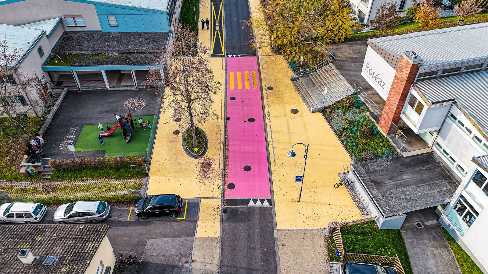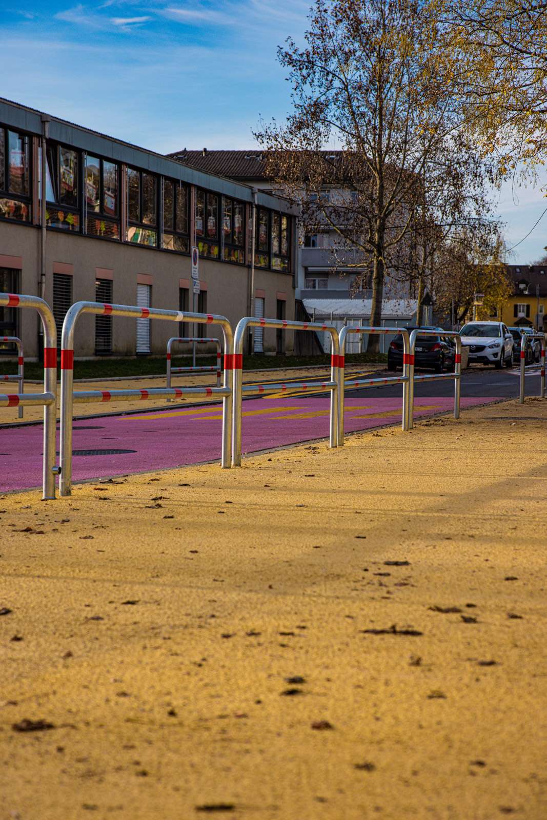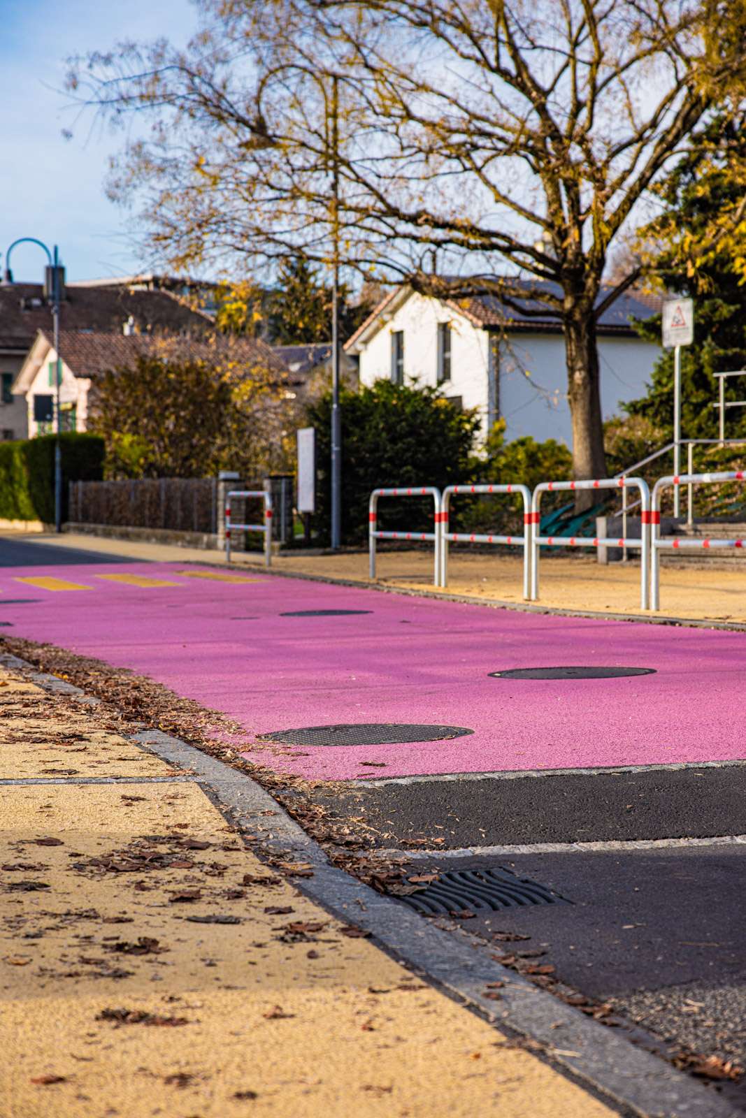Réalisation d’un marquage bicolore améliorant la perception des zones piétonnes.