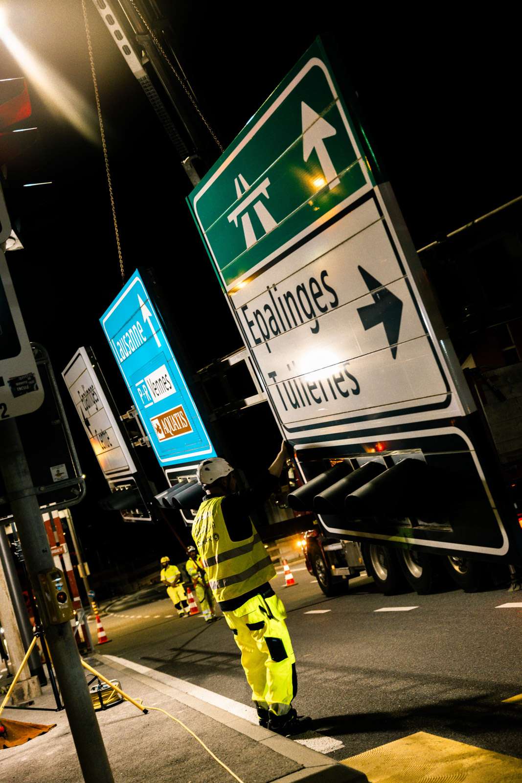 Installation réalisée de nuit, du 17 au 18 septembre, afin de limiter l’impact sur la circulation.