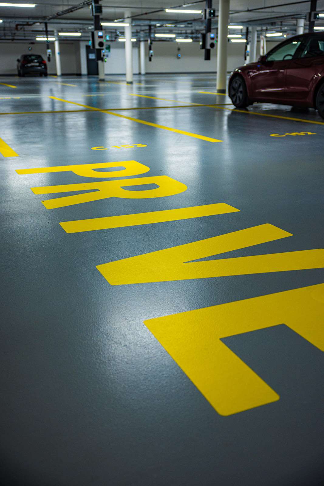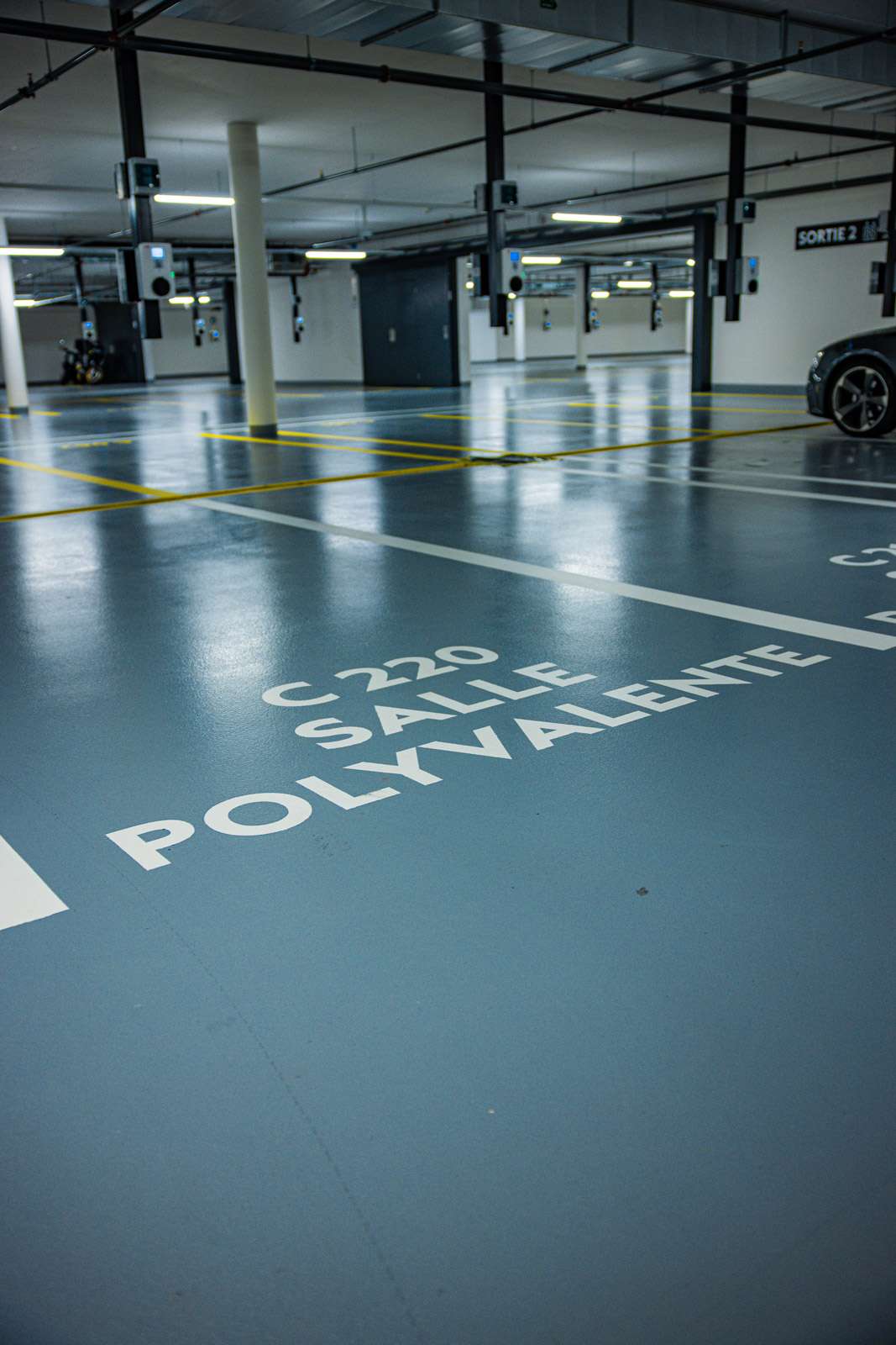Aménagement et signalisation du parking destiné aux résidents et aux visiteurs des bâtiments A et C, pour une orientation claire et sécurisée.