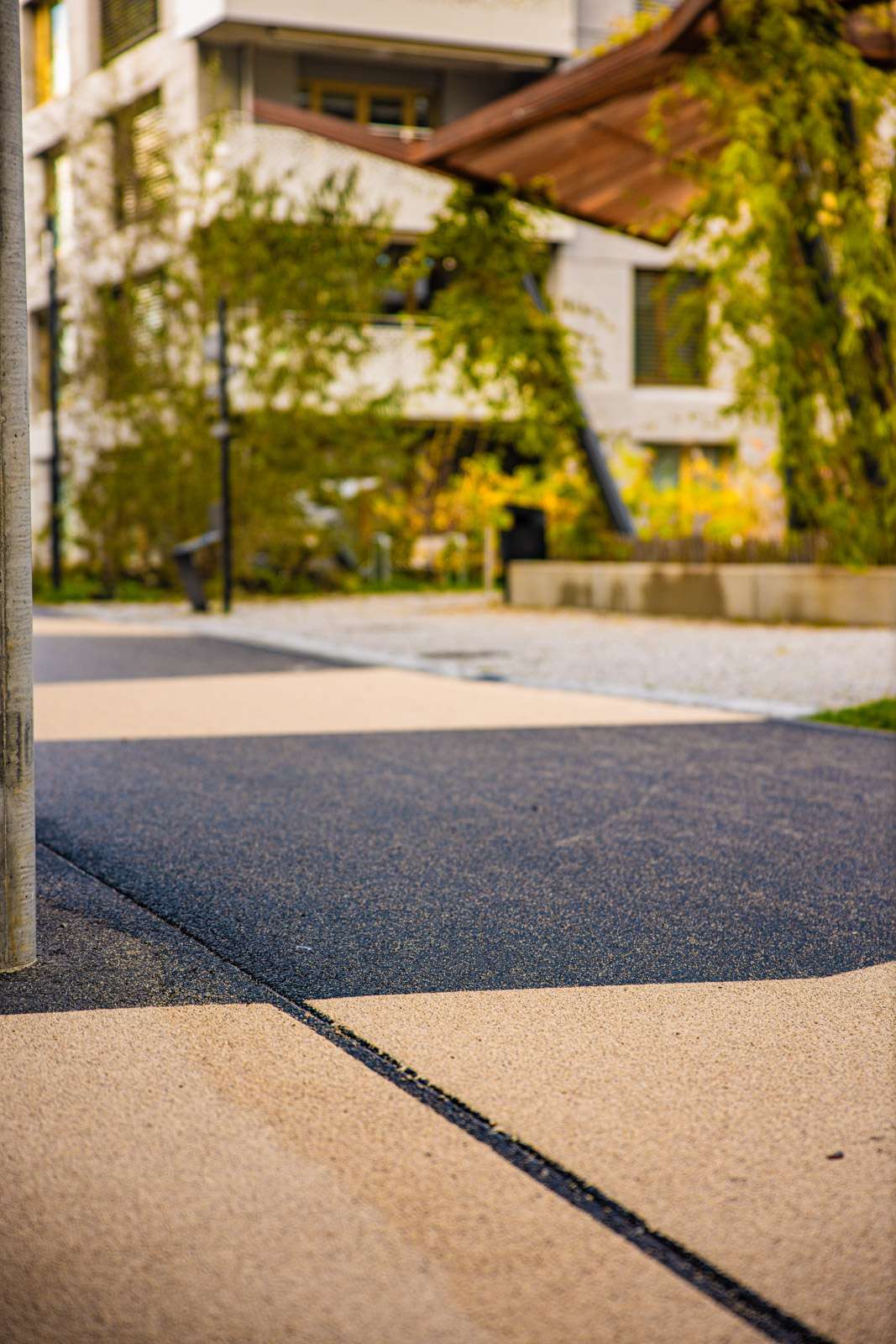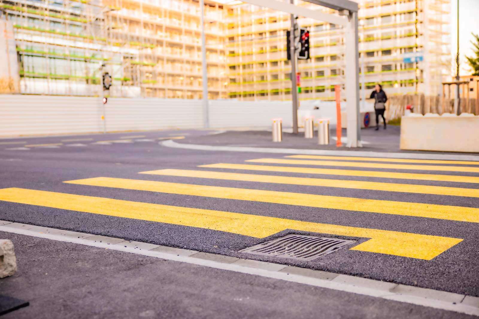 Réalisation du marquage du quartier A, structurant les circulations et les zones de déplacement.